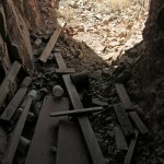 But atop the tailings pile was a flat ledge and the mouth of a mine.