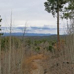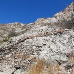 This Sunday was forecast to be unseasonably warm, reaching 70 degrees at home. Still looking to test my newly medicated knee on a mid-distance hike with elevation gain between 1,000 and 2,000 feet, I had my heart set on a trail west of here to a little 7,500′ peak that had been recommended for its views. But I’m trying to get pictures of rocks for my mother, and when I dug up some pics from that hike online, I could see it was all forest and no rocks.
