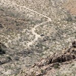 The ramp only took me part way – the rest of the climb was in loose dirt and loose rocks, winding my way between thorny shrubs, cacti, and agaves. I was more and more convinced this was a terrible idea and I’d end up badly injured or dead, but I was on autopilot and couldn’t give up.