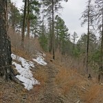 I’d driven the steep, rocky forest road, which climbs to within 200 vertical feet of the 8,970 foot summit, and I’d fallen in love with the views and the dark, spooky forest of firs and aspens that lines its deep, narrow canyons, where trees often fall and block the road for days or weeks. I assumed the road would normally be closed in winter, but this winter had been the driest in memory so I didn’t expect snow.