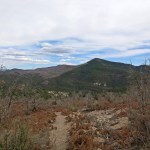 Since I still had a hour or more left for hiking, my plan was to do one of the partial hikes on my list on the way south. On the way back from the village, I spotted the burned ridge I’d hiked in the morning, peeking from behind intervening mountains – the first time I’d ever been able to identify this range from a distance in this dense, confusing mountain landscape.