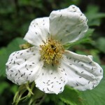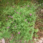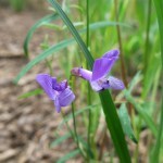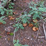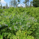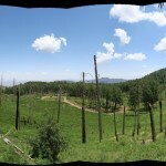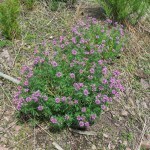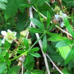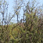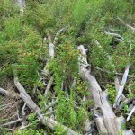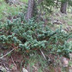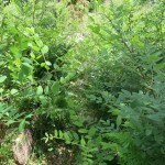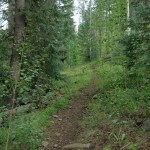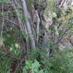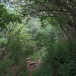 The trail climbed steadily, 300 feet in elevation to the top of the ridge, and unfortunately this patch of forest had been touched by the massive 2011 fire – not at high intensity, but enough to thin it out, creating a maze of deadfall and near-continuous thickets of locust regrowth. One treat was the strawberries – I’d never seen so many, although they were small, and most were not ripe yet.