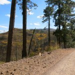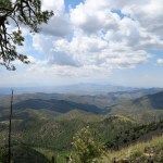On the way to a doctor’s appointment in Tucson, I noticed the eastbound lanes of the interstate were under construction. With all that driving, I wondered if there was a chance of getting a short hike in. So on my return, I took a detour off the backed-up interstate. I knew there was a forest road that crossed the crest of one of my favorite ranges, and I’d seen it from far away, snaking up the mountain, but I’d never driven it. If I could drive up there, I might be able to hike the crest trail for a mile or two without taxing my knee.