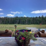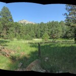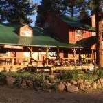 The drive winds through burn scars and intact spruce-fir forest, climbing over ridges and into and out of side canyons, passing the broad grassy meadows that line much of this plateau. At an elevation of over 9,000 feet, I came upon the lodge suddenly and pulled off. There were two motorcycles parked in front.