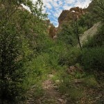 I went for a short hike near town – the start of a longer hike I do regularly when I don’t have a hurt knee. This first stretch gently ascends a canyon bottom on a primitive road, finally becoming a foot trail nearly two miles up the canyon.