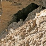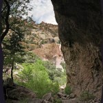 The wall above me had been incredibly hard to build, and has tiny windows that would be perfect for shooting arrows through. Unless there’s a spring inside the alcove – highly unlikely – whoever was using the shelter would have to traverse down a mile and 900 vertical feet to the nearest seasonal stream for water, and carry their supplies back up that difficult slope. To me, this appeared to be a lookout, from which scouts could scan a vast area of strategic terrain on a route between fertile river valleys in the east and west.