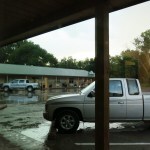 By the time I got to the town with the cafes, it was after 2, and the better one was closed. Fortunately the other, a “greasy spoon”, was open, and I got a decent burger with the worst fries I’ve ever seen. A big storm was gathering and I decided to grab provisions at the market and check into the motel.