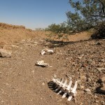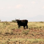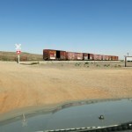 Also, I was driving my low-clearance 2wd pickup and had no idea how bad the roads would get. It’s a long approach on graded gravel, past an uninhabited backcountry railroad crossing, then more miles on an ungraded dirt and rock road that gets progressively rougher and less traveled, often detouring around washouts. I passed a spread-out herd and lots of what I assumed were feed dispensers, but didn’t see another human or moving vehicle. These flats looked terribly overgrazed.