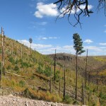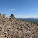 On the way back, I detoured off the crest trail and down onto a very primitive forest road, hoping it would be easier on my knee and give me better views to the east. But it was so rocky I had to walk very slow – tottering between a problem foot on one side and a problem knee on the other.