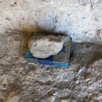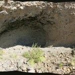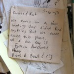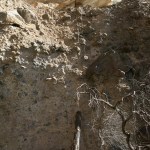 Pushing my way through more brush around the crumbling foot of the bluff, I discovered there was no way up the cliff. The prehistoric structure is inaccessible until someone finds a way to extend or replace that rope ladder. But below the hanging ladder is a small alcove with a sandy floor covered with recent footprints, and at the back of the alcove I found a tin box full of notes from previous visitors, as recent as six days ago. So much for my romantic fantasy.