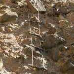 Finally I emerged from the scrub at the foot of the cliff, with the crumbling wall of the prehistoric structure about twenty feet above me, behind an overhang. The cliff curved outward at right, where a partial, primitive rope ladder was suspended, a dozen feet above the ground. I walked closer and saw it was made from nylon rope.