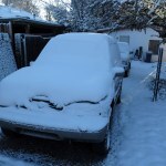 I was plenty sore, and the cramp returned as I drove out, trying to work the clutch pedal over rocky stretches of road. I had to stop, get out, drink more water, and stagger around for another ten minutes until it began to fade. But I managed to get home before dark – just as another unpredicted sleet storm began.