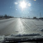 But getting out of town turned out to be the biggest challenge of the day. Both driver- and passenger-side door locks were frozen, and the de-icer I’d bought earlier didn’t work. I had to climb through from the rear hatch to start the engine and the heater, and it took 35 minutes to warm up the interior enough to free the locks and melt the frost off the windows.