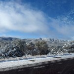 I anticipated ice on the highway, and sure enough, immediately outside of town the surface turned to pure ice. I switched into high-range 4wd, but was still limited to 35 mph – at that speed I could feel my all-terrain tires begin to slip. Big pickups and tractor-trailer rigs passed me going 45 – I guess the extra weight and tire surface helps. The ice lasted half the distance south through the low mountains, and it was a tense drive.
