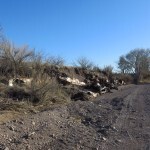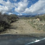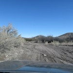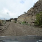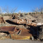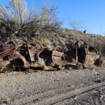 I encountered a final mystery on the way out – where the road runs down the wash, the bank was lined with half-buried old cars. I couldn’t tell whether it was by design or by accident – some trailer-trash rancher upstream might’ve had a junkyard that was washed down in a flood?