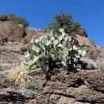 Tomorrow, I’d been hoping to do some clean-up at the cave where the ceremony would take place. But I arrived in mid-afternoon, so I was able to get a head start. A friend had suggested the wildflowers might be good now, but all I found was beavertail and hedgehog cactus in bloom. I’d been warned of juniper mortality, and sure enough, I found many had died recently.