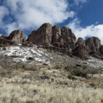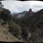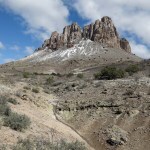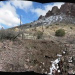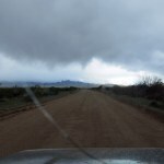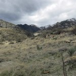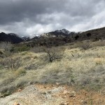 Before going to bed Saturday night, I finally decided to explore a mountainous area over on the Arizona border that I’d been eyeing from a distance for years. It ranges from 4,000 to a little below 7,000 feet, but it features dramatic rocky peaks, with no hiking trails but a network of old mining and ranching roads. It’s more than an hour and a half drive to get there, and it would be a shot in the dark – I didn’t know what kind of surface to expect, and the roads and the ground might be too muddy now.