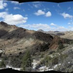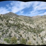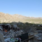 After disposing of the junk and trash and making lunch at my friend’s place, I drove over to my land in a much more remote mountain range for a couple days and nights of hiking and camping. The roads have gotten worse and worse over the years, which is a good thing, reducing both visitation and vandalism. It had been almost a year and a half since I’d been there last. High winds were forecast for the next two days, which worried me – it’s almost impossible to sleep outside in a high wind.