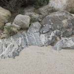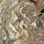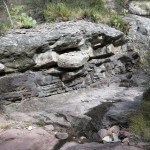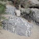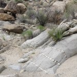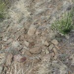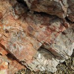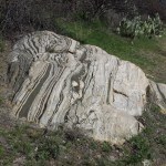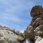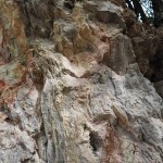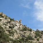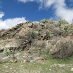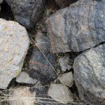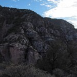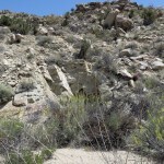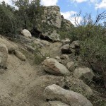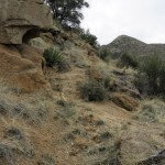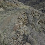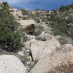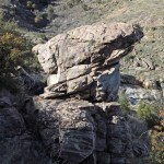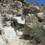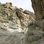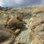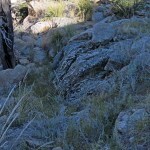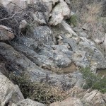 I spent a long time climbing over the rounded foot of an outlying ridge, finally reaching a side canyon that I knew led to the junction with the trail I’d explored last month. Past there, I expected to have to find my own way up the abandoned, overgrown continuation. But the rocks here continued to excite me – so much like the rocks in my desert mountains.