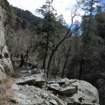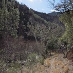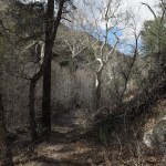 While looking for another snow-free low-elevation hike for this Sunday, I thought of one that leads to that abandoned trail. So I checked the trail maintenance log, and to my surprise, discovered that the canyon trail was cleared last fall, to 3-1/2 miles beyond the junction. Even better, a trail up a major side canyon was cleared to about the same distance. Long-abandoned trails in the heart of the wilderness are opening up – at least until the next wildfire or erosion event.
