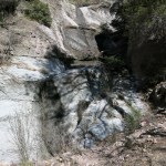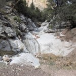 Halfway between the trailhead and the canyon bottom, the trail swerves back into a deep side canyon. I was to learn that with all the snow we’ve received, every side canyon now hosts a running stream.