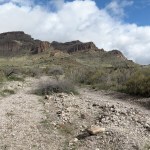 Though much shorter, with much less elevation gain, today’s hike in my desert mountains felt harder than either of those, and as I discovered during the next week, it took a more serious toll on my body than any hike I’ve ever done near home – even the bushwhacks in severe weather. It was also more dangerous, but interestingly, I never stumbled or fell, which happens regularly on those hikes near home.