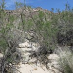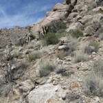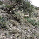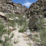 To get there, I had to proceed up the main wash. But above it on the left was a sort of ramp that looked easier going, and after climbing it I discovered another big stand of mesquite. The mesquite here was really thriving – in fact all the vegetation here seemed to be doing better than that around the cave farther north.
