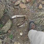 I dug out and turned on my headlamp, and nearing the back, found bones, and then parts of animal skeletons – a spinal column, a collapsed rib cage, and what appeared to be a couple of skulls. And at the very end was a patch of damp mud.