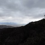Just below the peak I encountered a forty-something woman wearing a t-shirt from some statewide environmental group. She was perky and immediately asked me where I was coming from, but as I answered it was clear she wasn’t familiar with the area, and she seemed uptight and anxious to move on. She said she’d driven up the road to the crest and was just doing a short hike down this trail.