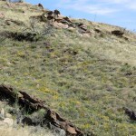 I had no trouble retracing my route down. And as usual, I paid more attention to the ground, finding a couple of old ram’s horns from mountain sheep, and a mushroom under a tiny nurse shrub.