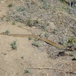 I kept going, but the dog kept barking, and another bark joined it, behind me. I ignored them, but their barks kept getting closer. Dogs don’t generally scare me, but here I was alone in the midst of someone’s very remote cattle range, and I had no idea what to expect. I kept going, the barks kept getting closer, and finally I turned to confront the two dogs. They were really worked up, angrily jumping up and down about a dozen feet away across a shallow wash. I talked to them in a friendly voice, calling them good boys, but they wouldn’t calm down.