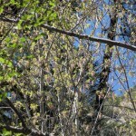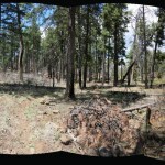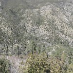 On the way down, I noticed isolated, charred skeletons of pines rising among the oak thickets on the upper slopes. These slopes which I’d accepted as covered with thickets had once been lined with mixed-conifer forest.