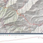 Since I’ve known these mountains by hiking them extensively for 35 years, I guessed that today’s hike only covered between 7 and 8 miles out and back, and when I plotted it on my mapping platform a week later, it turned out a bit under 8, with a little under 2,200 feet of accumulated elevation gain. But including many stops, it took 8-1/2 hours to complete.
