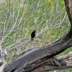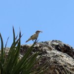 I was amused to encounter a shrike who stood on a yucca blade only ten feet away from me, making continuous agitated calls while holding an insect in its beak.