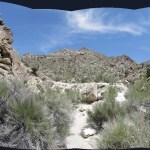 It interests me to compare this with the hikes I do back home, which are all to some degree preparation for hiking in the desert. Two weeks earlier I’d hiked 18-1/2 miles near home in the same amount of time, with almost 60 percent more elevation gain, on maintained trails. The hardest hike I do near home, more than 16 miles out-and-back with over 5,000 feet of elevation gain, only takes a half hour longer.