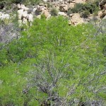 I reached the stream and the slot canyon sooner than expected, and not long after, the windmill appeared above the trees of the big wash. Back at the vehicle, I suddenly realized the shrubs surrounding me were creosote bush! My favorite desert plant, after a day of the kind of hiking I treasure in the desert. And I was left with plenty of time to get home before dark.