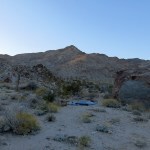 Our campsite, sometimes subject to vandalism, was in good shape. The air was still, and I was swarmed by flies and gnats as I set up camp. They had no interest in standing water or my open mug of beer – what they seemed obsessed with was my exposed skin, perhaps for the salts. They got so bad that I had to pull on my head net. I wondered if the invasive feral burros were responsible – they’ve only arrived here within the past five years. I tried to play guitar, but the flies and gnats crawled all over my hands as I played.