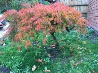 Let’s start with the topiary. This bonsaiesque tree resides outside my front door. It has been looking magnificent this autumn.
