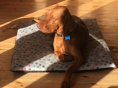 The dog isn’t allowed to chase them, much to his chagrin. Here he is enjoying a siesta.
