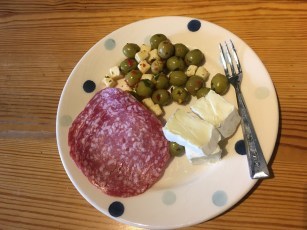 Here is a Tesco-originating, Italian-themed antipasto I assembled earlier.