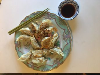 I was in luck however. Hidden away at the back of the freezer, there were gyoza. This time I succeeded in not getting them stuck to the frying pan.