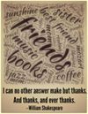 Happy Thanksgiving!! I didn't grow up celebrating such a day, but I really like that we can take time to be thankful. Today I want to be thankful for you. My friends know how strongly I resisted being active on Facebook right at the beginning. Fast forward two years and you guys have added a dimension to my life (and my writing) that I could never have foreseen. You enrich my soul with your consistent kindness. For that I am thankful.