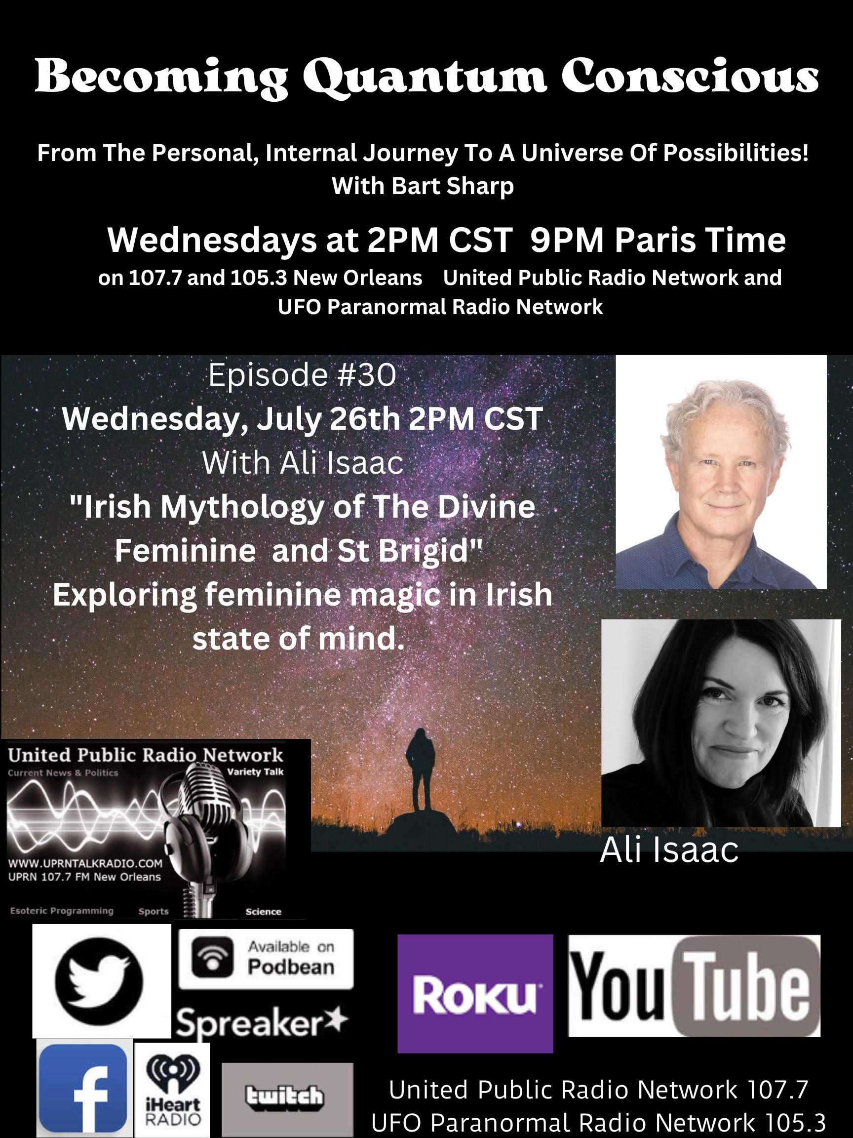 I just wanted to let you know that I will be on Bart Sharp’s podcast, Becoming Quantam Conscious, tonight at 8pm Irish time and 2pm CST, and I would love it if you could be there, too.