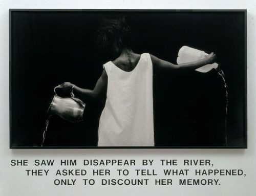 Lorna Simpson (American, born 1960). Waterbearer, 1986. Gelatin silver print with vinyl lettering, 59 × 80 × 21⁄4 in. (149.9 × 203.2 × 5.7 cm). Courtesy of Lorna Simpson. © 1986 Lorna Simpson