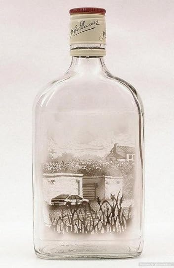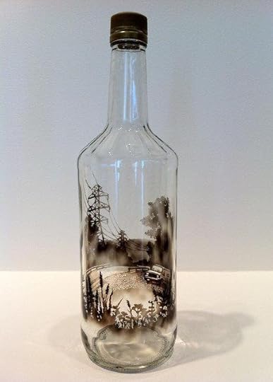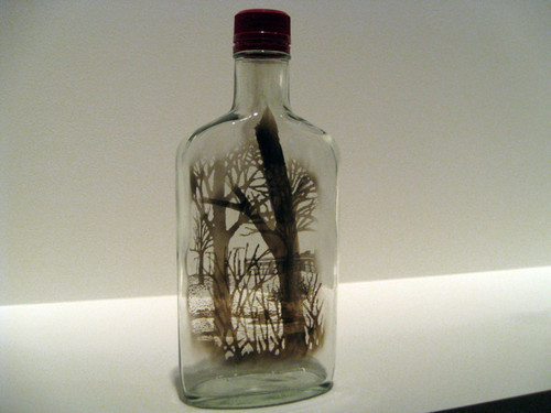 The Bottled Smoke Artwork of Jim Dingilian. He uses candle smoke to paint picture-perfect images on the inside of empty bottles. After laying a coat of soot on the lining of the bottles, the artist wipes and etches away with skewers and needles to construct the meticulously defined landscapes.(Masterpost of Creepy & Cool Art)