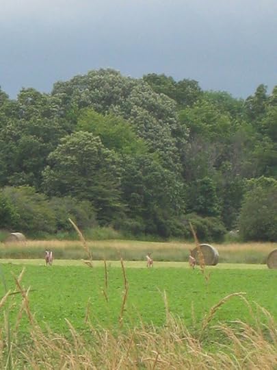 If you look closely, you’ll see the white tails of three deer (they were bucks) running away in the above photo. We have a bit of a deer infestation on the island …