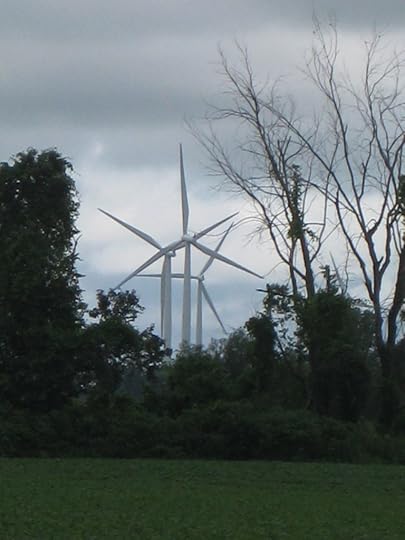 These turbines are very far away from our cottage – they’re on the other side of a huge bay – but they look really close in this photo.
