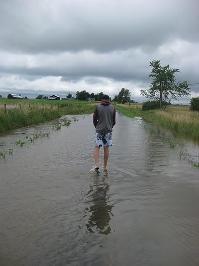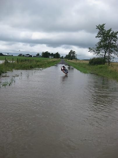 I kept running, came home, and as we all sat around and looked at the grey outside, my older son started pacing. “Hey,” I said. “Want to go see the flood with me?”