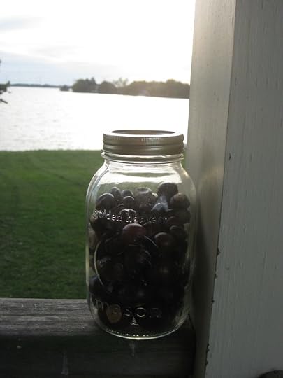It’s a mason jar filled with horse chestnuts (or conkers, as my British husband would call them).