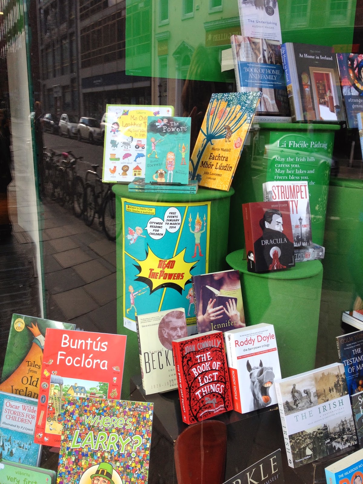 ...and a lovely Powers display with poster in the window of Hodges Figgis.